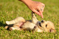 At least three times a day, cradle the puppy on its back and handle its feet, nails, ears, and mouth by first just touching them and then building up to being able to hold and even press them. Gently run your hands up and down the puppy’s tummy and over its legs and give it a gentle brush all over. Some puppies resist being cradled but they will soon learn to be comfortable and will eventually be quite happy to lie on their back for a relaxing massage.